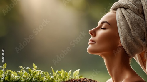 A relaxed woman enjoying the sunlight, epitomizing tranquility and wellness in a garden setting.
