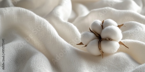 Soft cotton bolls on branch with golden confetti, elegant minimal background for eco, fashion, or holiday design