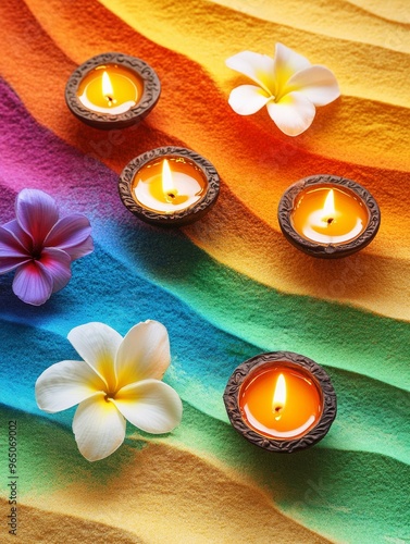 Diwali diya oil lamps with flowers holiday background. Creating a festive and decorative composition.