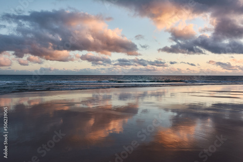 Landscape reflecting in low tide water. Atlantic Ocean, Portugal