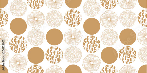 Hand drawn seamless vector pattern. Gold Texture Circles on a white background for printing, fabric, textile, manufacturing, wallpapers.