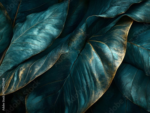 Luxury Teal Gold Leaf Texture Background Botanical