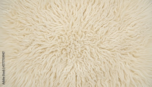 Sheep wool hide texture with soft fluffy fibers in creamy white tones, natural fleece pattern ideal for textile, fabric, and farm design backgrounds