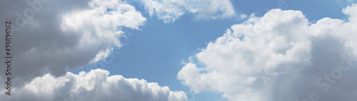 panorama pogodnego niebieskiego nieba z białymi obłokami chmurami