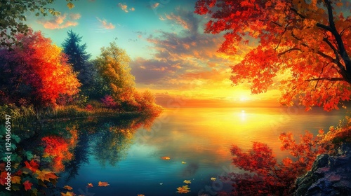 Autumnal Serenity: A Sunset Reflection on a Tranquil Lake