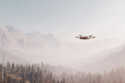 futuristic cargo drone flying over remote landscape delivering supplies to isolated communities