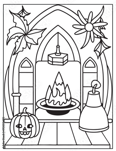 Halloween Witchs Lair coloring page design Halloween vector design black and white design