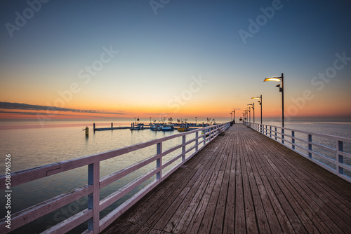 Sunrise over the pier in Mechelinki.