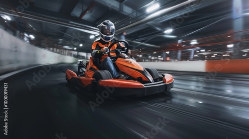 A man is driving a kart on a track, karting