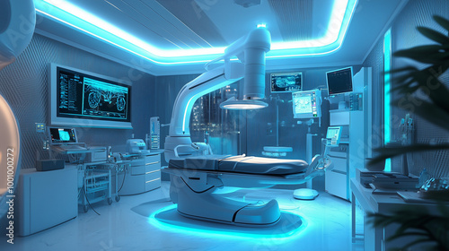 Nowoczesne wnętrze z robotycznymi systemami chirurgicznymi, które zapewniają precyzję i minimalizują ryzyko podczas zabiegów.