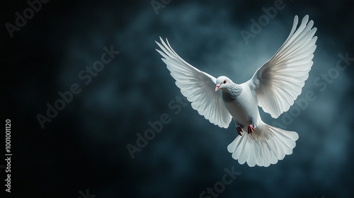 Skrzydlaty gołąb leci w górę, z rozpostartymi skrzydłami, symbolizując Ducha Świętego z Nowego Testamentu.