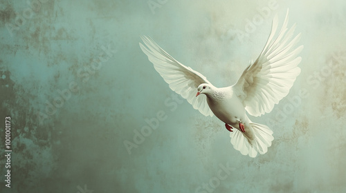 Skrzydlaty gołąb leci w górę, z rozpostartymi skrzydłami, symbolizując Ducha Świętego z Nowego Testamentu.