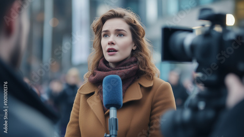 W trakcie wywiadu, młoda polityk z pewnością prezentuje swoje poglądy, a dziennikarze z różnych mediów uważnie słuchają jej wystąpienia, rejestrując każdy moment.