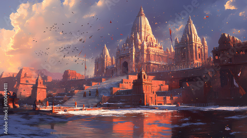 Shri ram mandir temple in ayodhya,birth place lord rama, january ,f pran pratishtha of shri ram. Hindu Temple. Illustration
