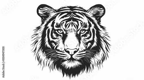 Logo design, stencil art style, solid silhouette of a tiger's face, high contrast black and white, white background. Stencil Art. Illustration