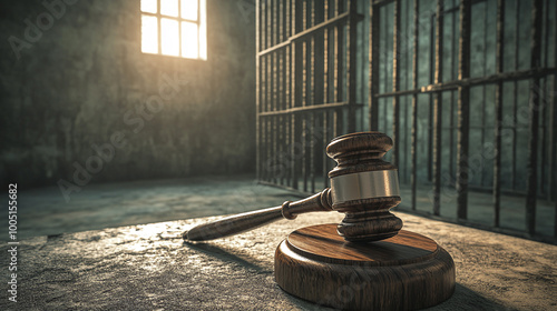 A gavel next to a prison cell, symbolizing sentencing, criminal justice, and incarceration decisions
