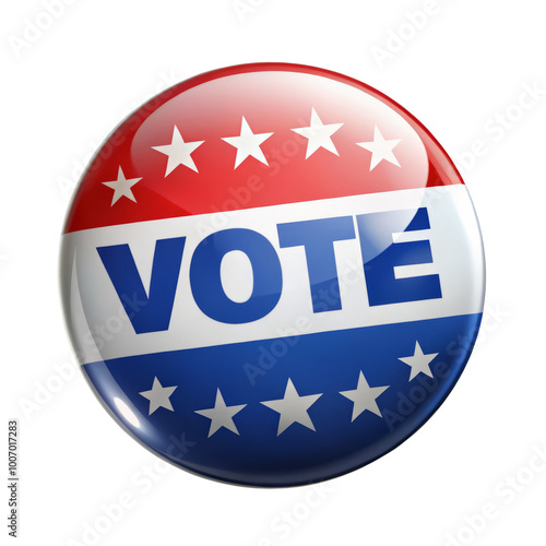 Patriotic "Vote" Election Badge with Stars Isolated on White Transparent Background, PNG Element. Vote pin