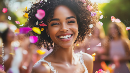 W atmosferze radości i miłości, panna młoda promienieje szczęściem podczas swojej ceremonii ślubnej.