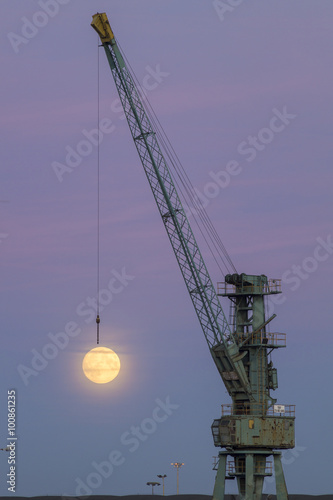 Dźwig,żuraw portowy dźwigający księżyc w pełni