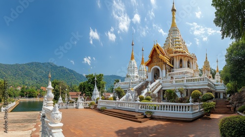 The grand architecture of Wat Pa Phu Kon, with its beautiful golden spires and serene surroundings.