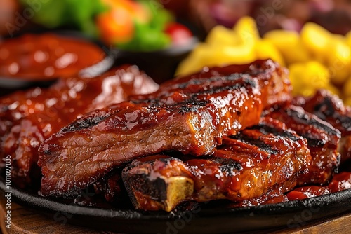 Kansas City style barbecue. Barbecue glazed with sweet tomato-based sauce, smoked meat. Generative Ai