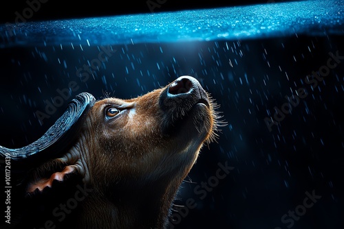 A Cape buffalo with its head raised, staring intently into the distance, symbolizing the alertness and power of this formidable Big Five species