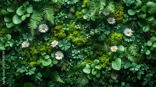 Zielona tapeta mech i paprocie, roślinny wzór, trendy 2025, tło generative ai