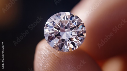 Diamond solitaire gemstone, brilliantly cut with facets reflecting and refracting light