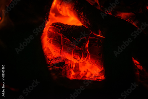czerwone i żółte płomienie w ognisku lub w kominku naturalnym