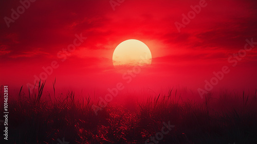 Zachód słońca w intensywnych czerwonych barwach tworzy hipnotyzujący widok nad horyzontem.