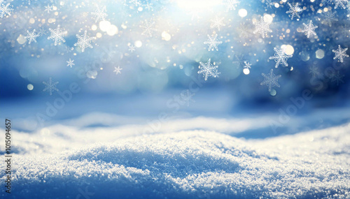 Zimowe niebieskie tło świąteczne. Boże narodzenie, płatki śniegu. Zimowa tapeta, puste miejsce na tekst