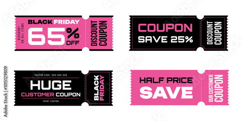 Black Friday coupon set, vouchers promotion design template for sale, special price offers banner, promotion poster. Vector illustration