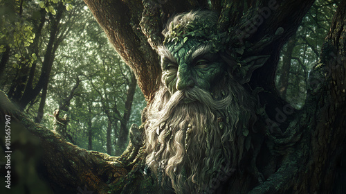 Myth of the leshy a forest guardian spirit ancient slavic folklore towering figure blending into the trees mystical presence protector of the woods. Forest Guardian. Illustration