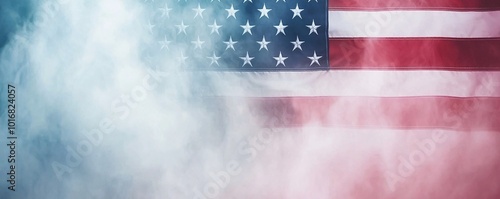 American Flag Fluttering Against a Stormy Sky - Bold and Dramatic Close-Up of Red White and Blue Colors in Turbulent Weather