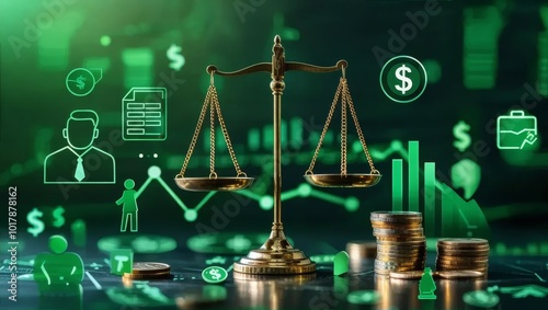 Justice and Finance Concept with Scales and Currency