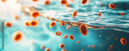 Contaminated water with bacterial growth, biohazard environment, 3D illustration