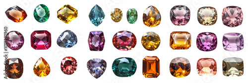 Colorful gemstones isolated on transparent PNG background image perfect for jewelry-themed illustrations or decorative designs