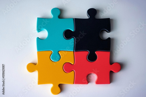 rompecabezas con piezas de colores sobre fondo plano, concepto de contraste y opuestos, armar desarrollo personal, recursos editoriales creativos
