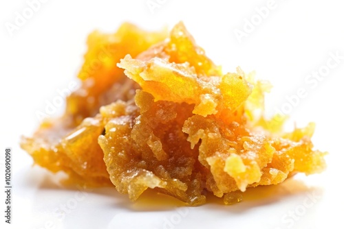 Forced perspective view of cannabis concentrate wax badder isolated on white background