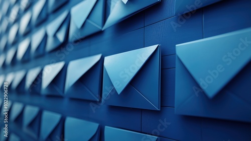 Blue envelopes arranged in a pattern on wall