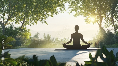 Silhouette of a Person Meditating in a Tranquil Forest Setting