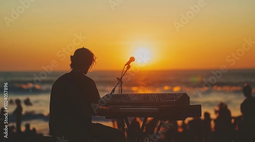 Sunset beach festival with multicultural music,