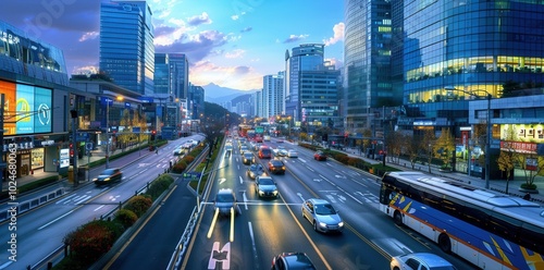 Vibrant Transportation in South Korea. High Detailed Wallpaper