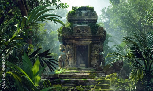 Mysterious shrine among tropical trees, 4K hyperrealistic photo