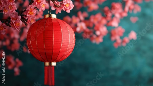 Ornate Chinese New Year decorations with lanterns, flowers, and banners displaying auspicious symbols, Chinese New Year celebration, decorations, symbolism, luck