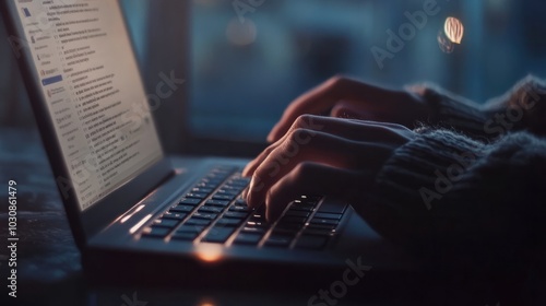 Typing on laptop closeup, chatting in Facebook, meeting website. Blogger, journalist writing new article.