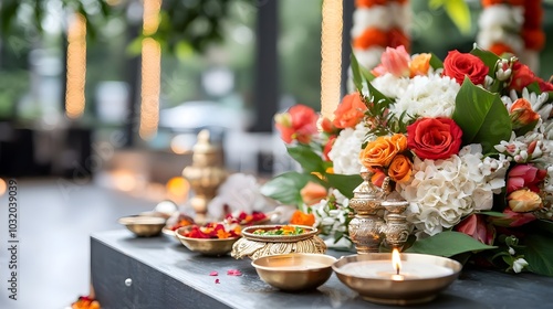 Beautifully decorated Hindu temple with vibrant Diwali lights flowers and ornate architecture capturing the spiritual and cultural essence of the festival