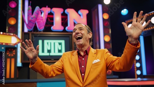 Nostalgic retro game show host celebrates winning moment on TV