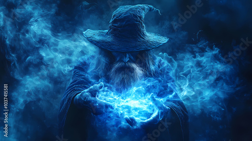 Mystical sorcerer summoning elemental magic. sorcerer. illustration. Elemental Wizard. Illustration