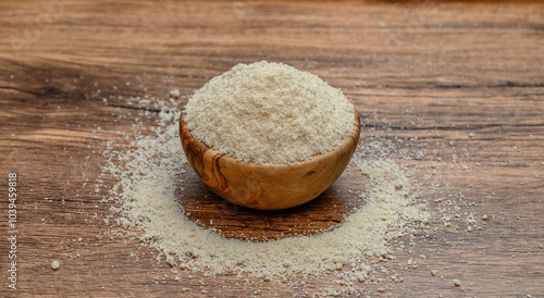 Izolowana mąka migdałowa z mielonych migdałów w drewnianej misce